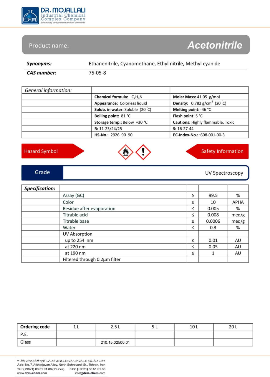 معرفی استو نیتریل گرید UV Spectroscopy :