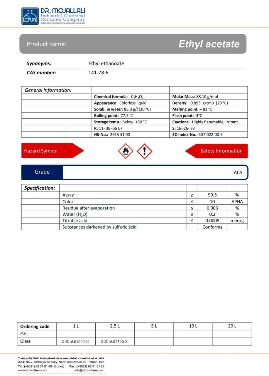 قیمت خرید آنلاین و اینترنتی اتیل استات دکتر مجللی و سایر محصولات شیمیایی سایت نانوثانی را ابتدا مقایسه کنید.
