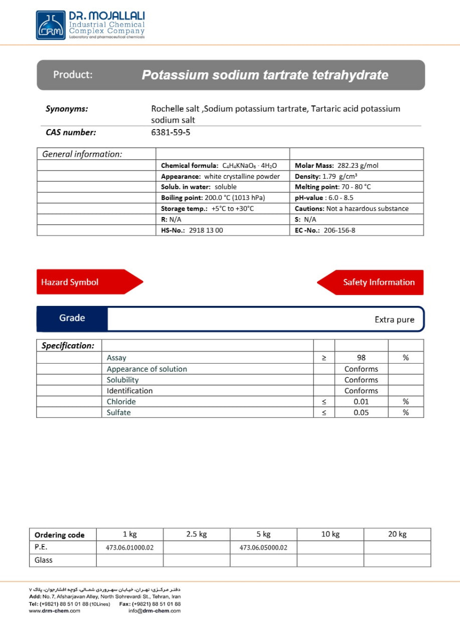 پتاسیم سدیم تارتارات (Potassium Sodium Tartrate)